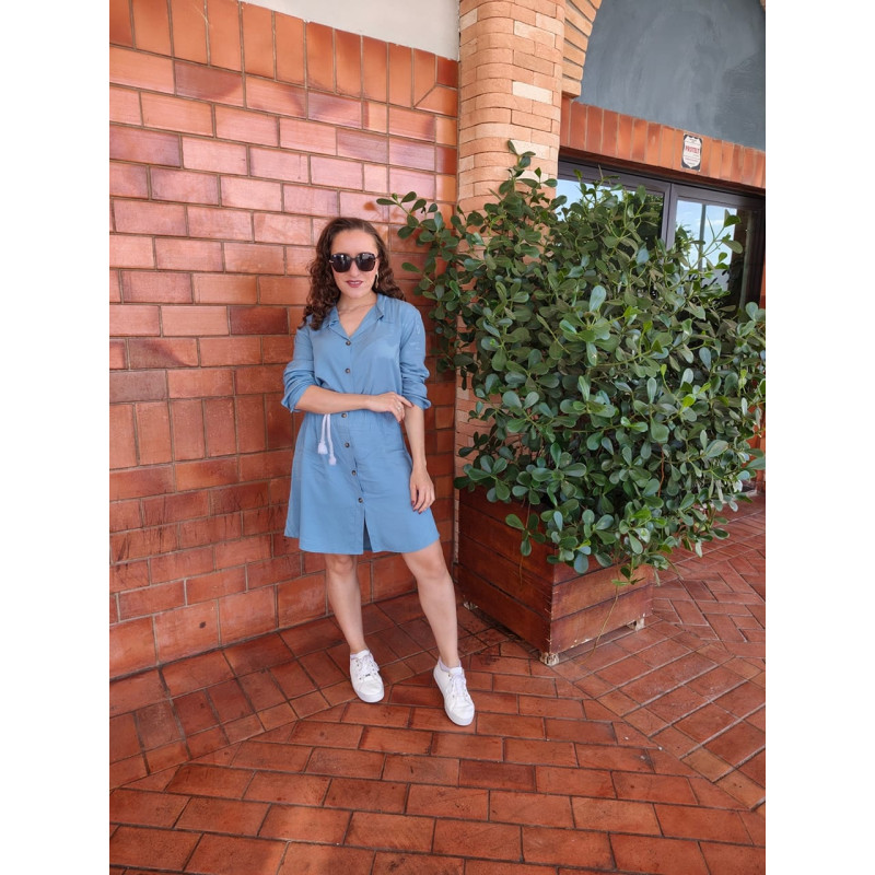 Vestido chemise com manga longa.